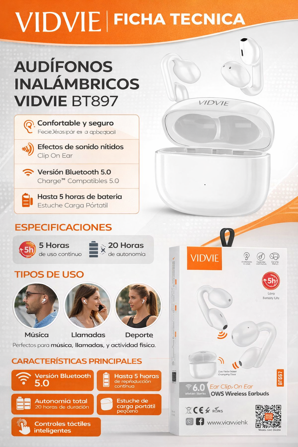 Los audífonos OWS tipo clip ofrecen un diseño innovador que se ajusta a la oreja sin introducirse en el canal auditivo, brindando comodidad prolongada y mayor seguridad al mantener la percepción del entorno.